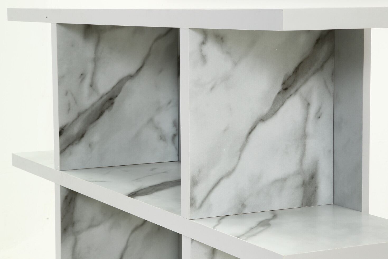おしゃれな大理石調のオープンシェルフ。幅1200mm、奥行310mm、高さ1085mmで、リビングやダイニング、書斎など、多彩なシーンで活躍します!