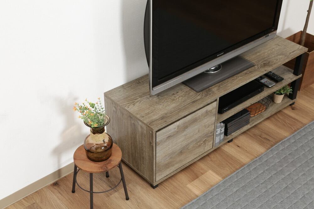 FIT収納付きTVボードは、AV機器やゲーム機をオープン部分の2棚に配置し、魅せる収納を実現する理想的なTVボードです。深さのある収納スペースには、DVDやコード類をすっきりと収めることができ、リビングを整然と保ちます。