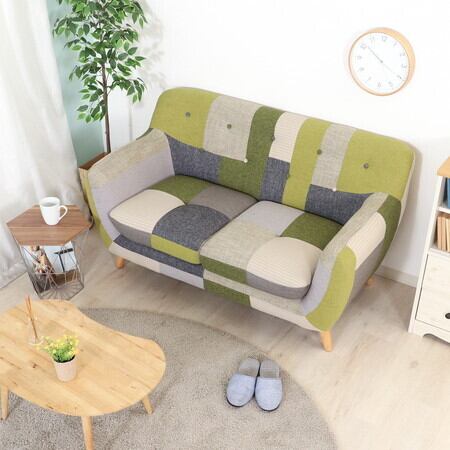 パッチワークが目を引くおしゃれな2人掛けソファ