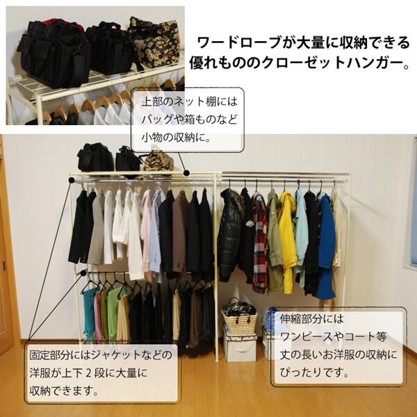 伸縮部分にはコートやワンピースなどの丈の長い洋服を収納。