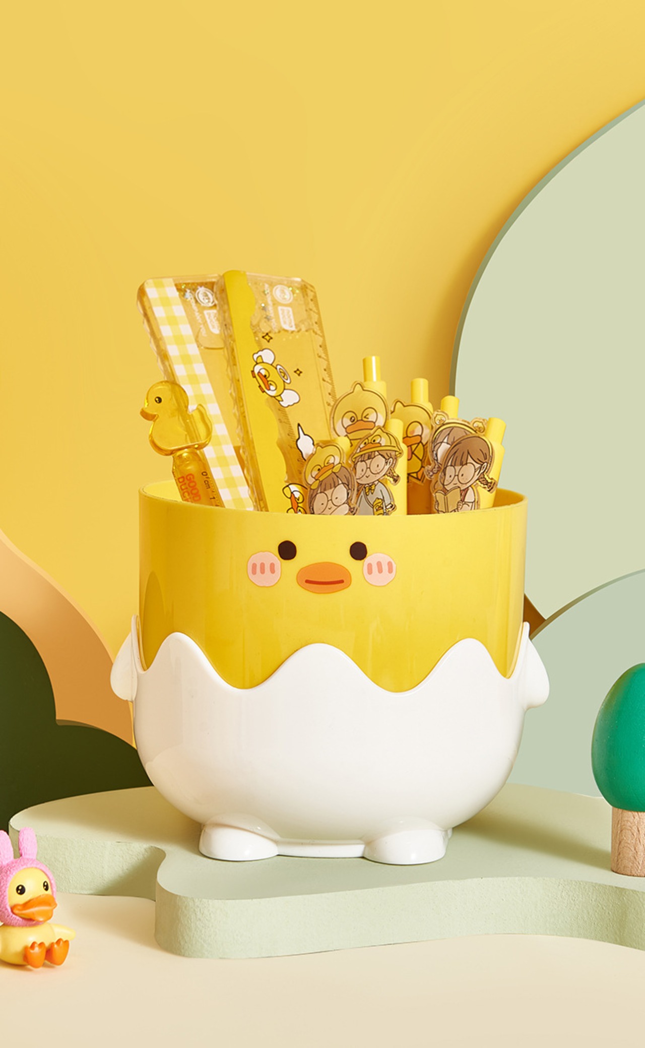 机の上でペン立てや付箋やクリップなどの小物入れに便利。
