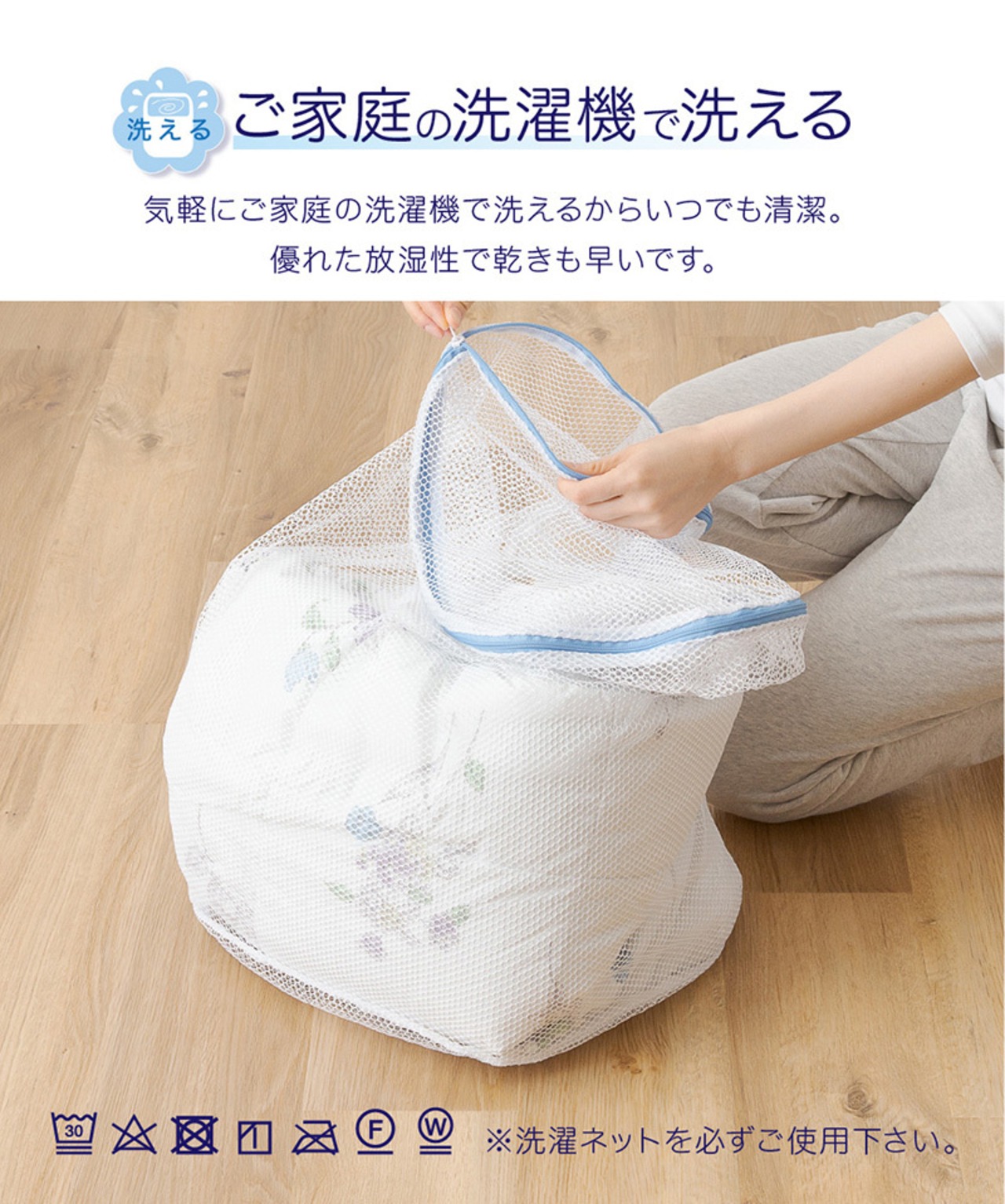 *表地に高密度生地を使用し、中綿に長繊維を採用することで、ホコリの出にくい布団になりました。